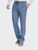 Acest model este alegerea perfectă pentru cei care iubesc stilul easy-to-wear. Cordonul aplicat la betelie și terminațiile elastice asigură comfort și lejeritate. În varianta 100% in acești pantaloni devin modelul de bază al unui look casual în varianta jogging pants, fiind pe departe cea mai bună alegere. Buzunarele sunt accentuate prin nasturi și cusături.Suplu, in italian pur 100%, ideal pentru zilele toride de vară, care lasă pielea să respire,lăsând astfel o senzație răcoritoare. Ușor, plăcut la atingere, prietenos cu pielea, toate acestea datorate finisării speciale cu aloe vera. Este ușor de întreținut prin spălare. Buzunare în culori contrastante și multe alte detalii interesante, dau acestui material acel plus inexplicabil.